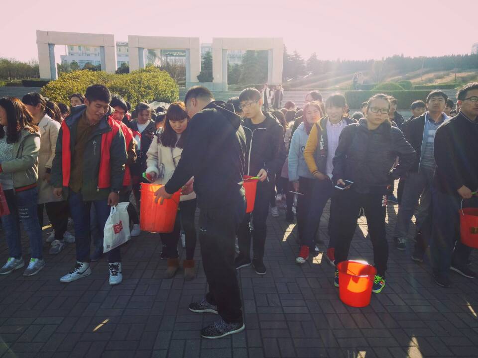 下午3点50分,志愿者们在扇形广场集合完毕。校志愿者服务总队队长李晓飞安排注意事项并为同学们分配劳动工具。同学们按照人数平均分为4组,到达各自负责的教室,井然有序的进行清扫工作。扬起的尘土和冰冷的凉水阻挡不了他们的热情,男生们用水桶接水,拖地,女生们扫地擦桌子,清除墙壁上的涂鸦。他们分工明确,努力打扫,使教室焕然一新。