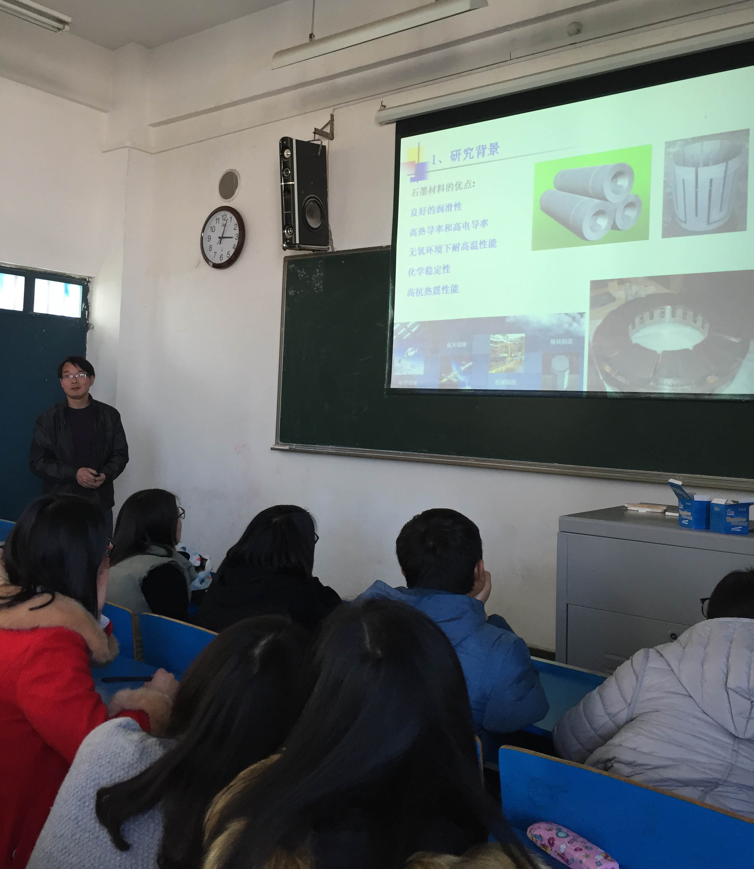 2017年3月2日下午,公司韩永军老师在4212教室为公司2016级材料班同学做了一次题为“高强、高导热石墨复合材料低成本制备与性能研究”的报告。