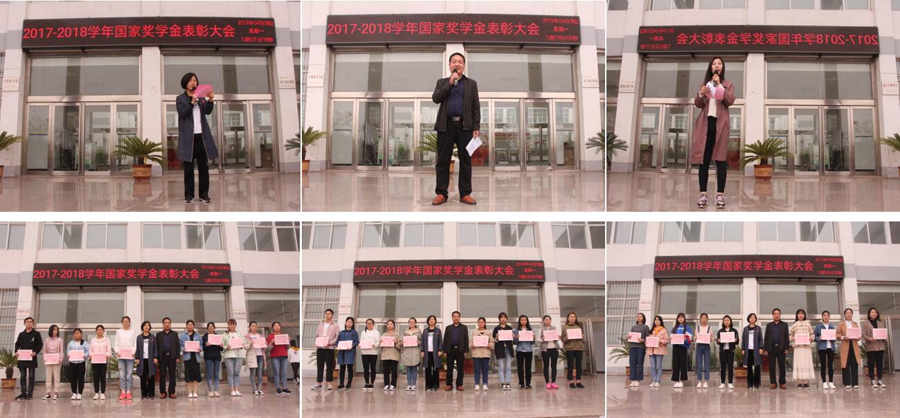 4月8日中午,谈球吧在化学楼前举办2017-2018学年国家奖学金表彰大会,大会由罗世颖老师主持,16级、17级和18级全体员工参会。