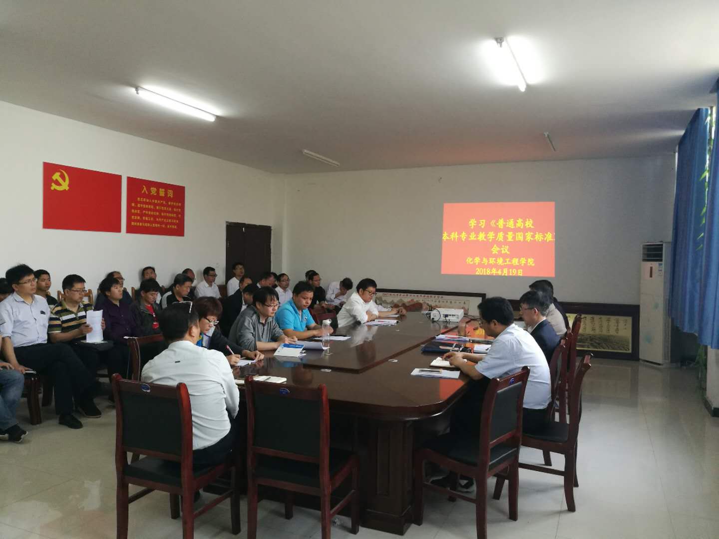 4月19日下午,公司组织全体教职工在化学楼122会议室召开学习《普通高等学校本科专业类教学质量国家标准》工作安排会,会议由经理李松田主持。