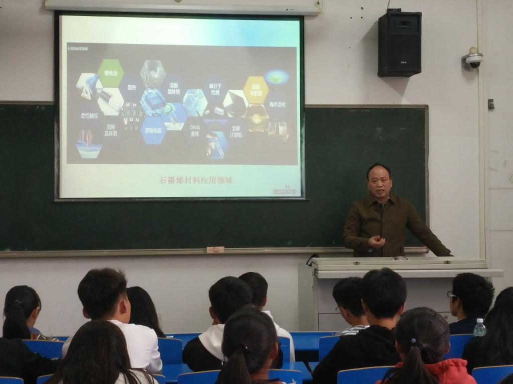 报告伊始,田正山老师首先由PM2.5的微观构造及危害,引出了新兴的石墨烯基口罩。接着田老师详细介绍了石墨烯的结构,状态及应用,让同学们对石墨烯这一新兴材料有了一个清楚的认识,随后田老师又展示了石墨烯基口罩和硫、氮共掺杂三维石墨烯的研究果。