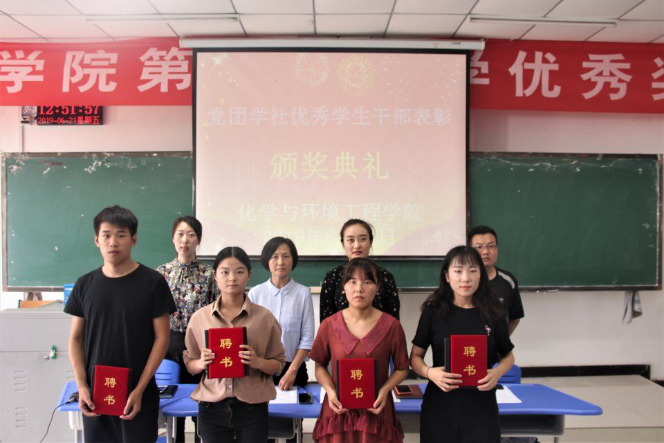 6月21日,谈球吧在L211举行2018-2019学年党团学社换届暨优秀员工干部表彰大会。党总支副书记孙学荣、辅导员罗世颖、史小倩、师广岭,以及党团学社新老成员参加了此次会议。