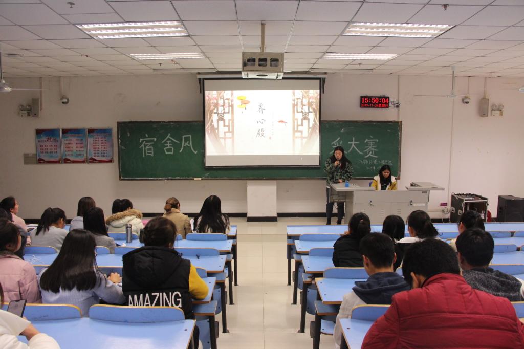 活动同时在A、B两个会场内进行,各位观众、嘉宾和评委在活动开始前陆续入场,各会场负责人也准备好了相关工作。活动正式开始后,主持人宣讲了活动规则,每个宿舍代表依次上台,以PPT的形式从成员组成、才艺展示及未来规划等方面展示了自己宿舍的风貌。丰富多彩的PPT不仅让同学们看到了每个宿舍精彩的布置和日常趣事,更见证了来自五湖四海、寓居一方的友谊。活动期间,由嘉宾和评委们组织了“宿舍电器安全问题”和“预防肺结核措施”的抢答活动,充分呼应了此次宿舍风采大赛的主题,增强了同学们对传染病的防范意识。此次活动中有20个宿舍脱颖而出,1123等两个宿舍荣获一等奖,1112等六个宿舍荣获二等奖,1109等六个宿舍荣获三等奖,1115等六个宿舍荣获优秀奖。活动尾声,评委给获奖宿舍颁发了获奖证书和精美礼品并合影留念,此次宿舍风采大赛也圆满结束。