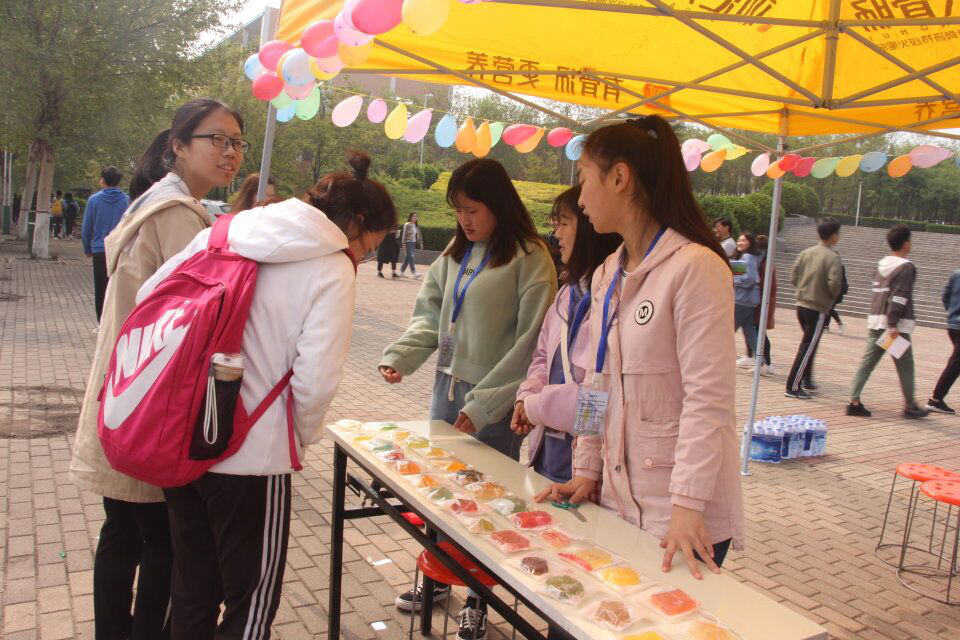 4月11日上午,由谈球吧社团联合会老员工双创圆梦协会主办的“有声有色学化学,有滋有味过生活”化学题谜活动在扇形广场举行。
