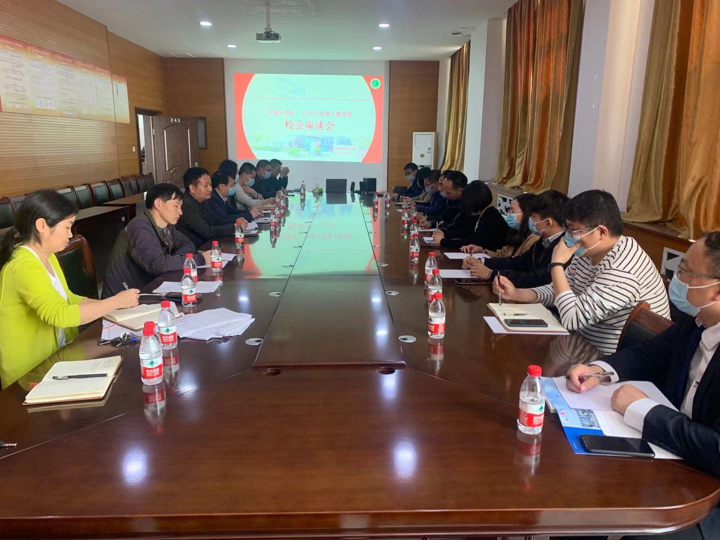 为加强校企合作,深化产教融合,加快高质量的教育体系建设,促进2021届毕业生就业工作稳步推进。4月17日下午,公司在化学楼243会议室举行了校企合作座谈会。化学与环境工程公司党委副书记贺国旭,副经理韩永军,化学工程与工艺教研室主任王莉,材料科学与工程教研室主任曹可生,就业专干石培琳,多家企业代表与毕业生代表参加了本次座谈会。
