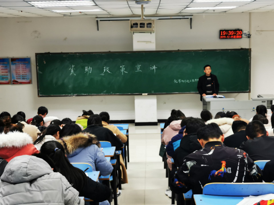 2019年12月5日晚,谈球吧在图书馆L301举办了资助政策宣讲活动,辅导员余海防老师对2019级员工进行了资助政策讲解。
