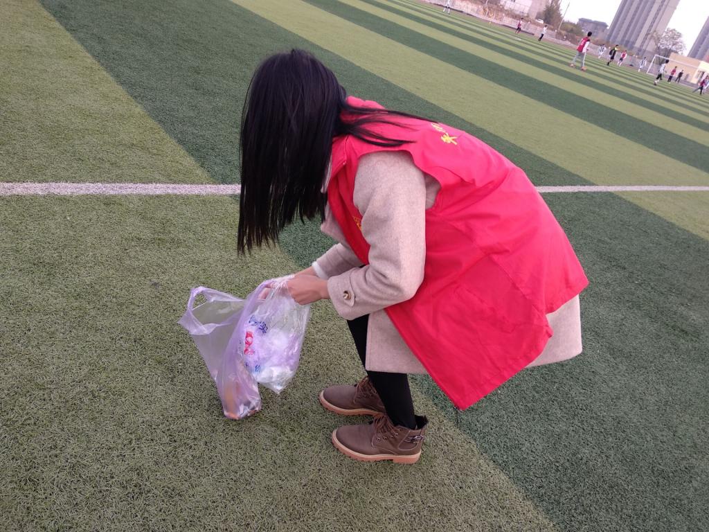 活动伊始,活动负责人向志愿者们发放了手套和垃圾袋,志愿者们分成若干小组开始了此次活动。活动过程中,志愿者们认真捡拾操场上的各类垃圾。他们弯腰捡取垃圾的身影,成为了操场上一道靓丽的风景线。虽然操场上刮着冷风,但这并不影响志愿者们保护环境、为同学们服务的热情。志愿者们将自己捡取的垃圾丢到了就近的垃圾桶里,看着自己打扫干净的操场,志愿者们满是成就感。最后活动在全体参与成员的合影中圆满结束。